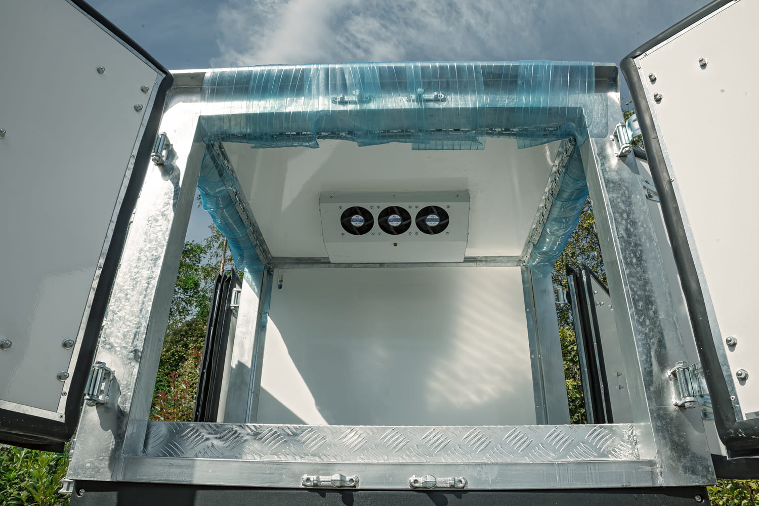 - Materiał komory chłodzenia: Dwuwarstwowe włókno szklane, 80XPS, aluminiowa podłoga, 3-stronne drzwi